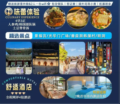 注:由于韩国旺季酒店及用车紧张,如遇交通堵塞及不可抗力等其它因素,我社保留对行程顺序及行程时间安排调整的权利,给您带来的不便尽请谅解! |